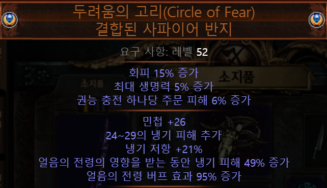 버프효과와 냉기피해 2옵션 신서링은 기본적으로 8엑 이상합니다. 전 임플리싯이 2개나 유효인 신서링을 10엑에 구매해서 사용했습니다.